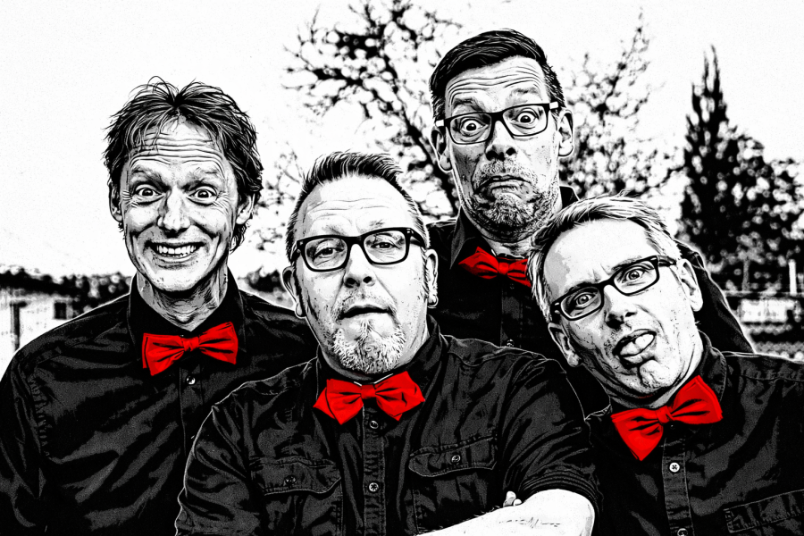 Seit 1997 zelebrieren KinderCore aus Gütersloh ihre Form des Punk-Rock. Die vier Herren mit den markanten roten Fliegen setzen dabei stets auf deutsche Texte. Das Themenspektrum reicht, immer versehen mit reichlich Augenzwinkern, von abstrusen Alltagsgeschichten bis hin zu gesellschafts- oder zeitkritischen Aspekten. So wurde unlängst der, eigentlich schon in der Versenkung der deutschen Gegenwartsgeschichte verschwunden gedachte, Klassiker „Rita und Kurt“, eine Liebesgeschichte zwischen der naiven Rita und ihrem AFD wählenden Nazi-Freund Kurt aus Görlitz, wieder ins Programm genommen. KinderCore wollen ihr Publikum aber vor Allem unterhalten, nicht belehren. Song-Titel wie „Rapunzel is dead“ oder „Tütensuppe, Kasperpuppe“ versprechen jede Menge Spaß und die dazugehörige Musik lädt garantiert zum Tanzen oder auch zum Pogo ein.
